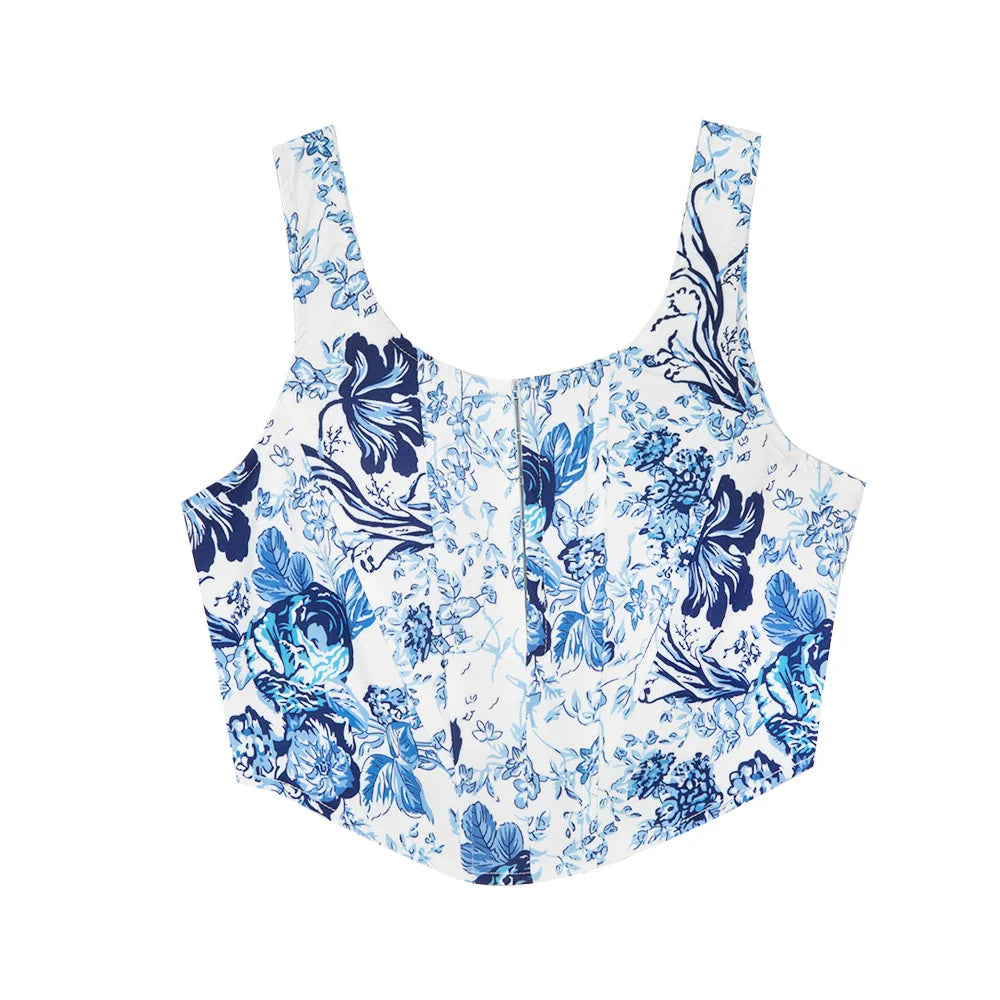 Sara | Blue Ethnic Style Cropped Tank Top